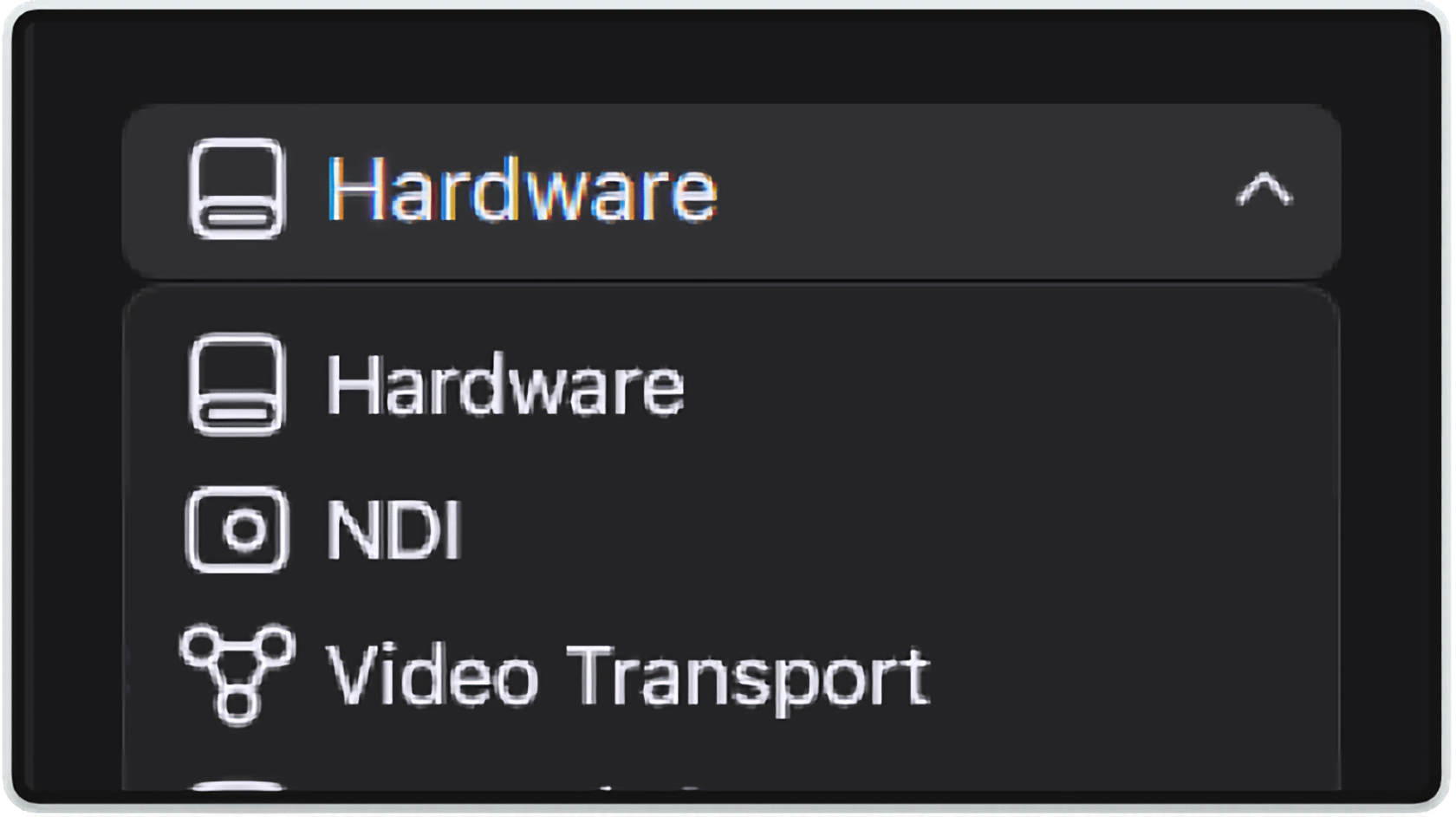 Whatever video sources you need to use in your production, DT has you covered. Professional SDI video capture devices by Blackmagic Design, AJA, Bluefish444, Magewell. NDI®, SRT, RTMP, and HLS streams. Web and IP cameras. Video Transport feeds.